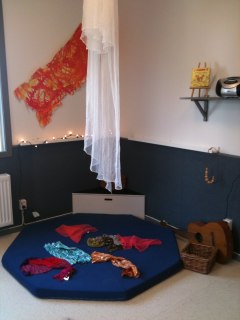 Vi pratade om vad barnen gillar att göra, vad pedagogerna har observerat att de håller på med. Det handlade mycket om att pilla, plocka, flytta, rulla så vi tog in material som de kunde utmans med. Detta blev en början för pedagogerna att utorska vidare vad barnen vill. De inhandlade speglar som ska upp på väggarna (behövs bl.a. vid byggen) för att reflektera ljus och material samt göra barnen syngliga på flera sätt. Bilder och dokumentation gör sedan barnens avtryck mer synligt och ger dem en möjlighet att se varandras görande.