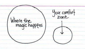 Dessutom tänker jag att bara för att man kliver ur sin bekvämlighetszon så behöver man inte kliva långt bort. Ibland behöver man bara böja på knäna för att se något helt annat, men även det kan vara lite jobbigt….