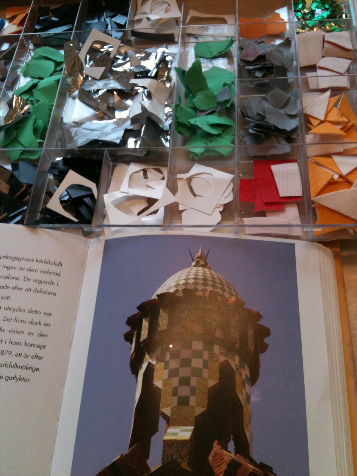 I detta projekt, som kom att handla om mönster och former, erbjöds sedan som komplement t.ex. bilder från Gaudis fantasifulla byggnader och kombinerade med matererial som var liknande i färger och former.