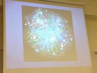 Markus beskrev hur de tänker kring vad de utvecklar i de digitala miljöerna. Att man på 1årsavdelningen har tillgång till en webbkamera som filmar rummet och bilden projiceras på väggen. De använder webcamtoy.com Vi får se film av barn som rör sig ut och in i bilden, målinriktat, utforskande, skratt, tjut, rörelse. Jag tänker på uppfattningen om kroppen, om mig själv, om rörelsen, om tekniken som förstärker och förbryllar. Vilka miljöer tänker vi att barnen kan hantera? Vågar vi utmana våra egna tankar om vad barnen kan utforska? Ja säger jag, det måste vi våga!
