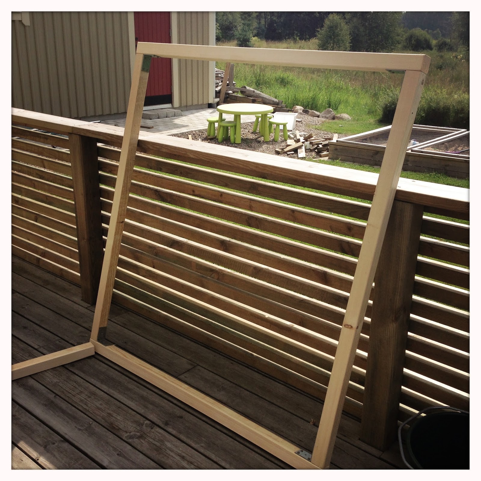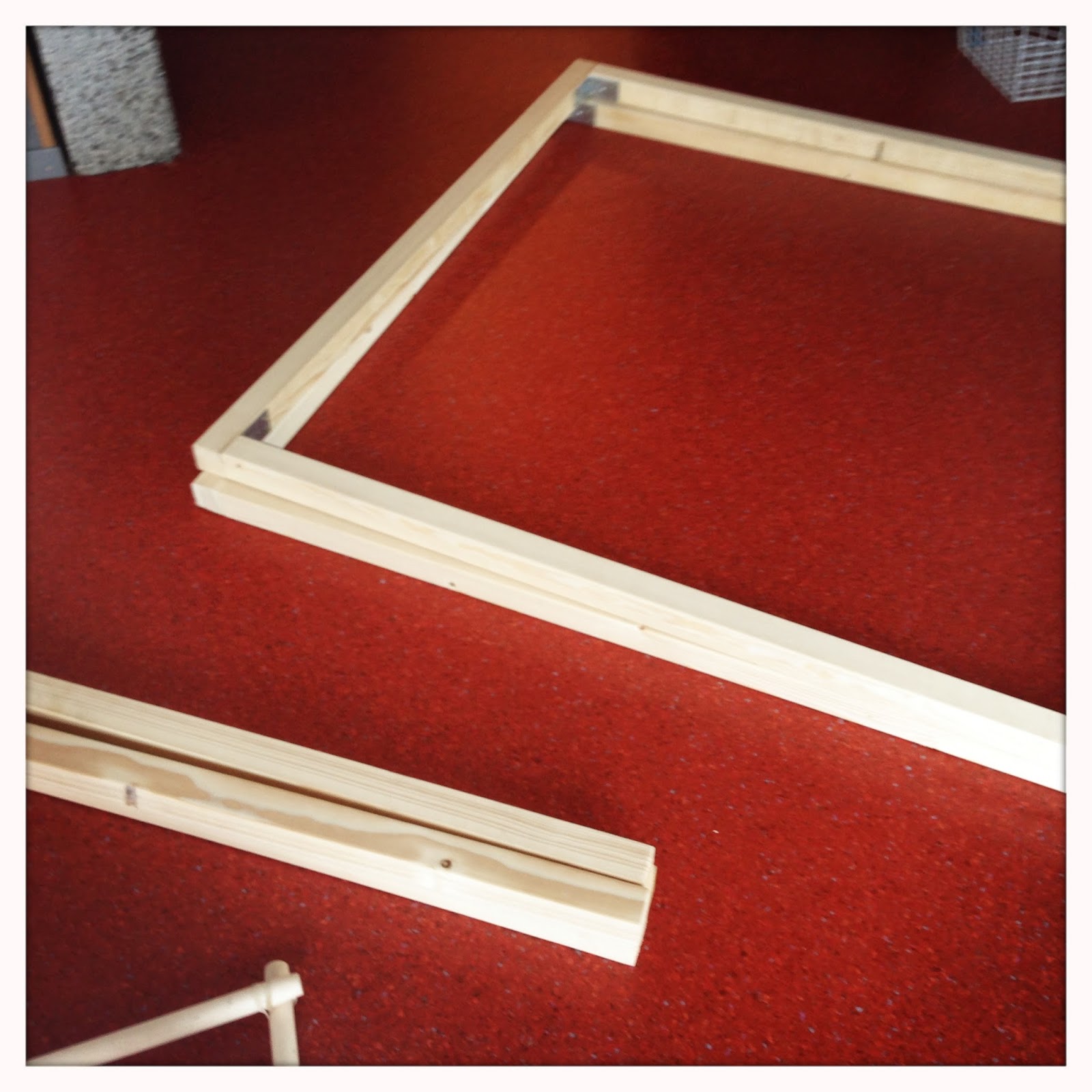 Idag var vi och lämnade av en hel del grejer på förskolan. Åkte först förbi min sons förskola och skänkte lite grejer där och sen vidare till min. Jag fick enastående uppbackning av min man när jag skulle bygga kuberna jag skrev om i inlägget På väg mot stora torget. Idag kapade vi 12 st bitar av ribborna och skruvade tillsammans ihop två ramar med vinkeljärn i hörnen för stabilitet. Alltihop åkte med till förskolan. Vi hann tyvärr inte skruva ihop kuben helt idag, får göra det en annan dag i veckan.