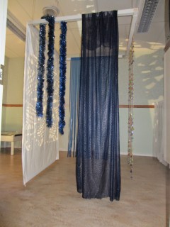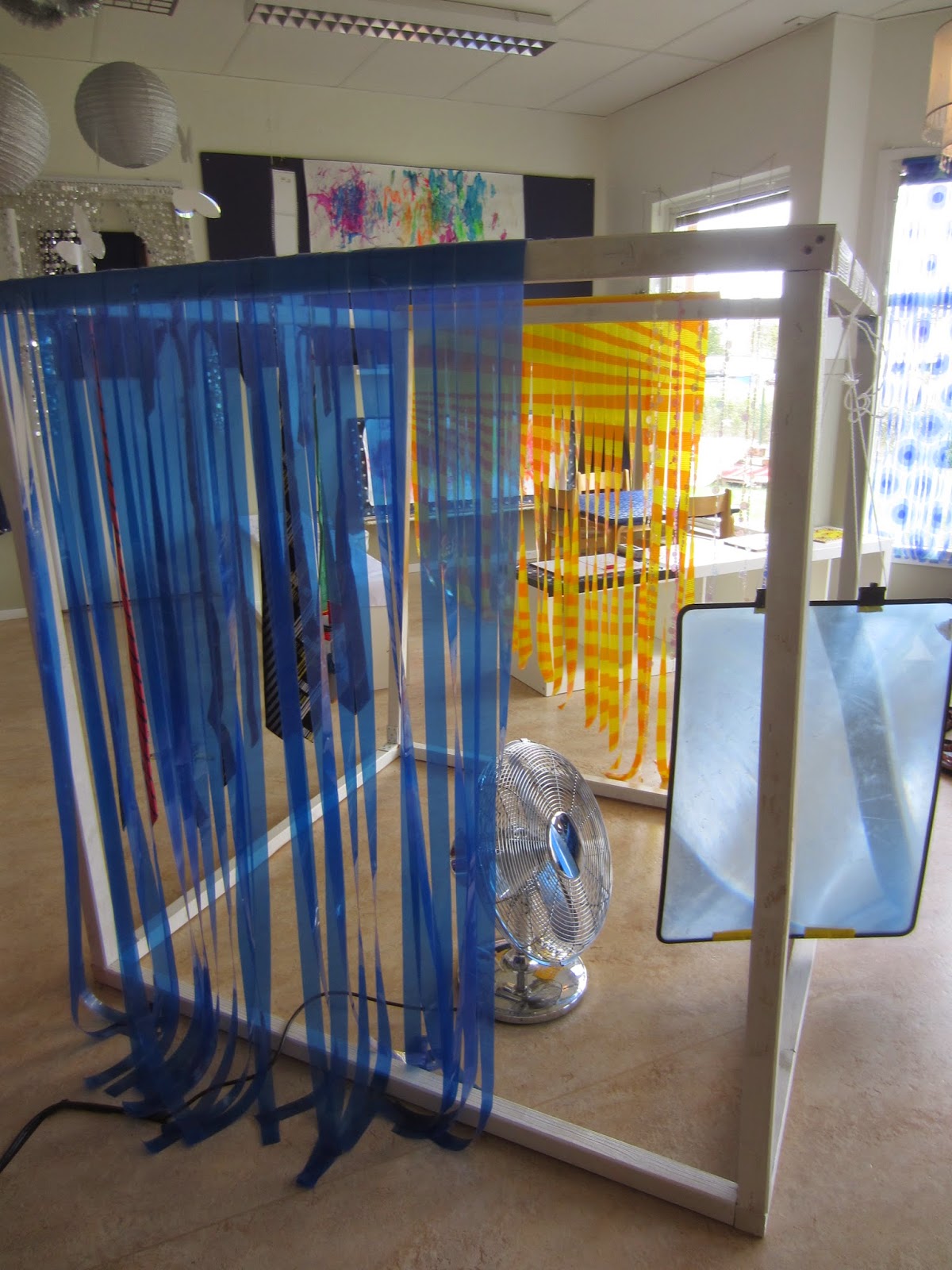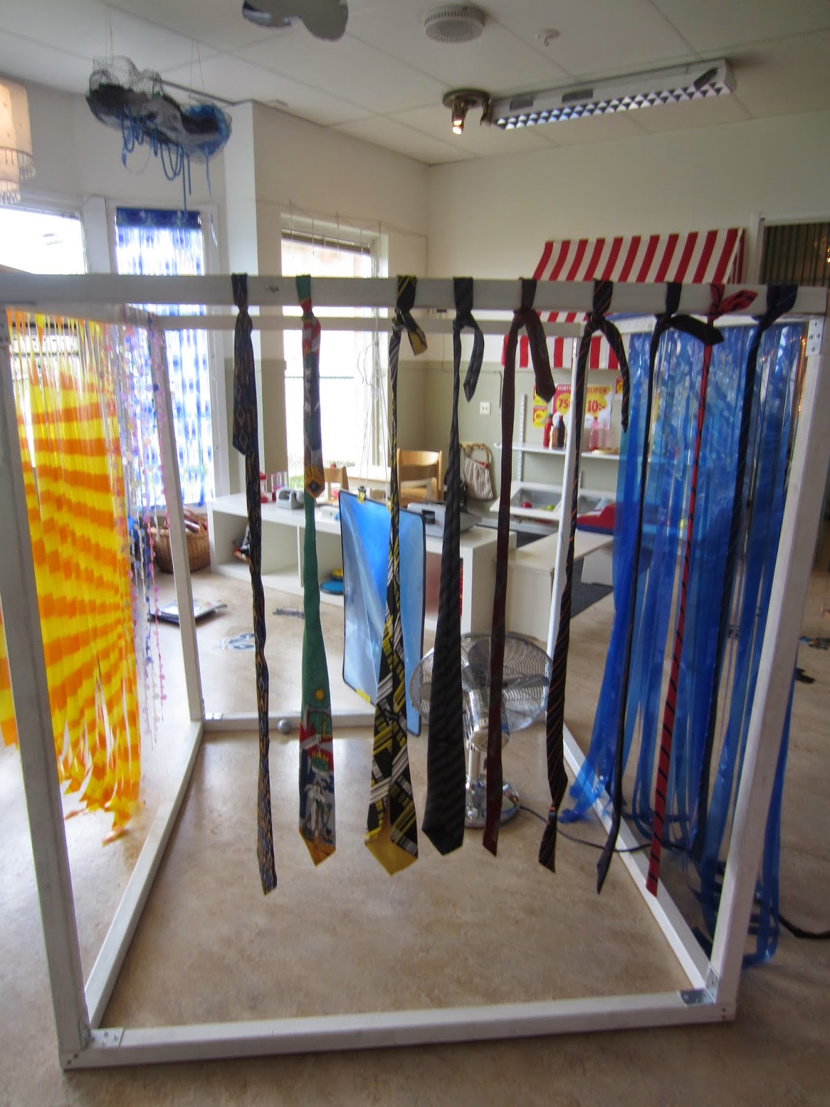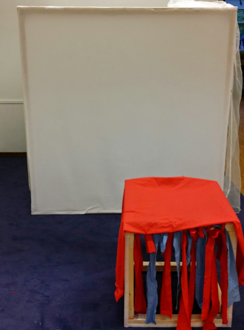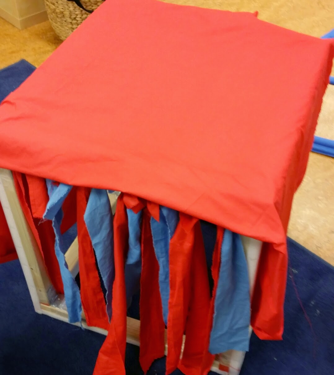 Vi byggde våra kuber efter att jag och min chef varit på studiebesök på Katarina Västra där Markus Bergenord arbetar. Vi byggde dem i augusti och har totalt fem stycken i tre olika storlekar – ca 0,5m3 (den med röda och blå band) , ca 1m3 (den som står mot en spegel) och ca 1,5m3(den med stort vitt tyg) . De har kardborrband på alla sidor för att man ska kunna byta tyger. Ännu så länge har vi endast tvitt tyg. Vi projicerar bild och ljus från projektorn på kuberna. Barnen (1 och 2 år gamla) utnyttjar ”rummen i rummen” mycket. Både de stora och små kuberna. Jag/vi håller hela tiden på att fundera över vilket material vi kan tillföra för att förändra rummet. Så bloggposten är toppen som inspiration! Tack!