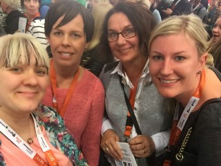 | Erika Kyrk Seger, Martina Lundström, Maria Samrell och Markus Bergenord på Lärarförlagets mingel onsdag kväll. |