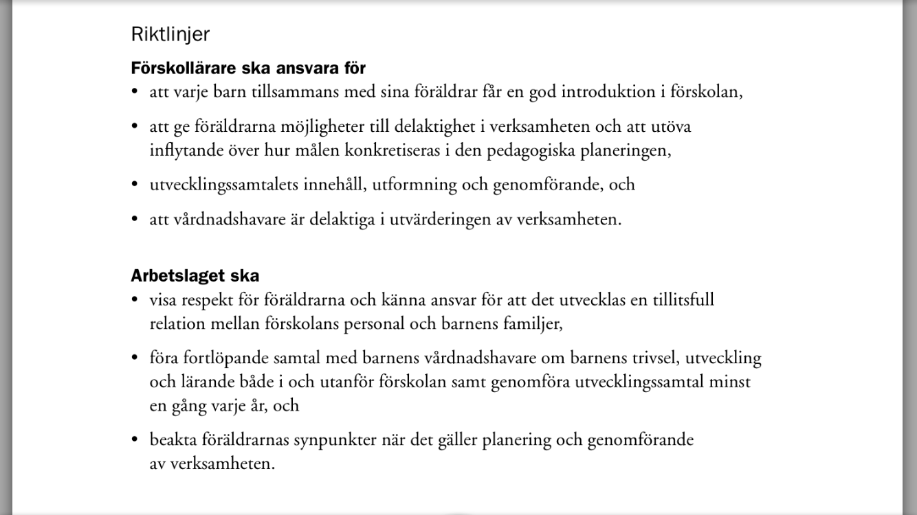 Viktiga grejer i läroplanen om vi nu ska börja prata om att introducera barn och familjer till förskolan. Ikväll gjorde en av Kullerbyttans läsare mig uppmärksam på punkt 1 under Förskollärare ska ansvara för: