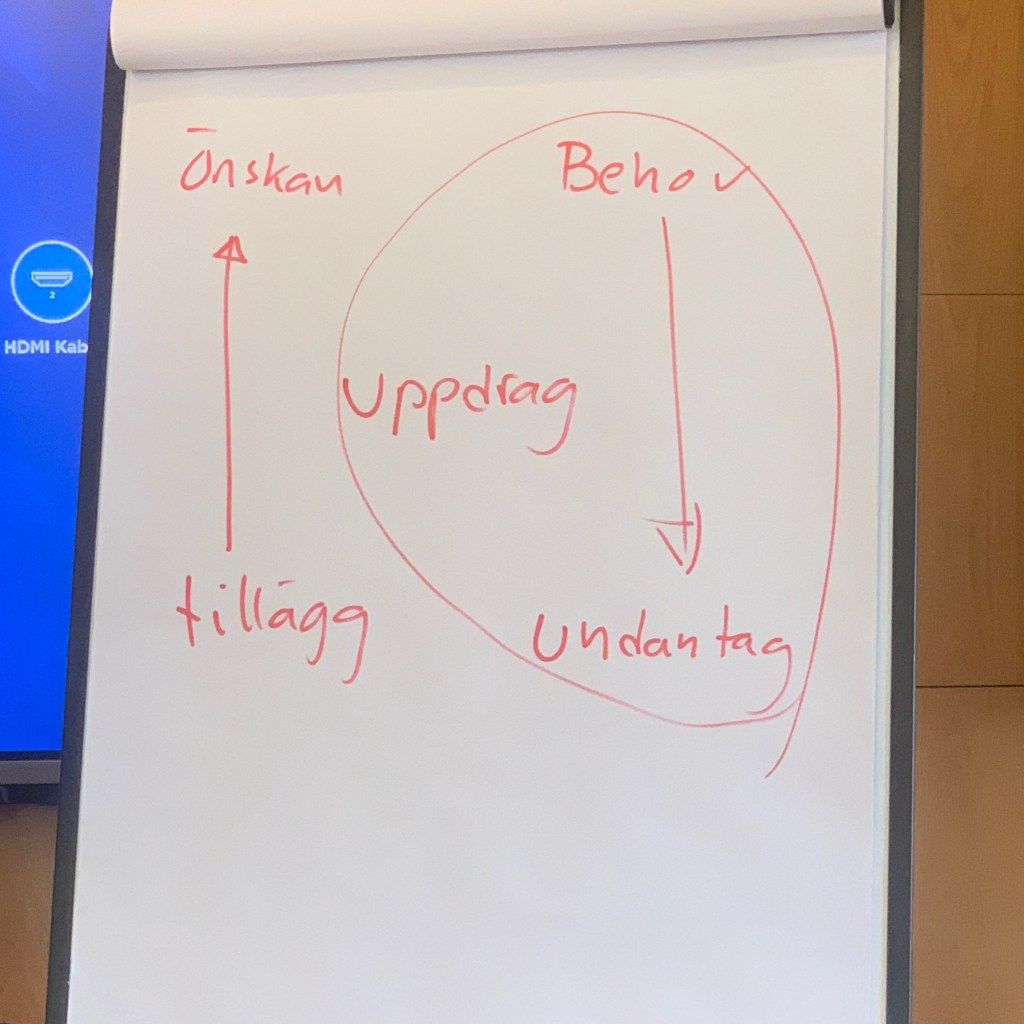 Han förklarade att vi har ett grunduppdrag som uppkommit på grund av ett behov. Om behovet kräver det kan vi göra undantag från vårt grunduppdrag som behövs för att behovet ska bli uppfyllt och det är helt ok. Det som inte är ok är när vi börjar göra tillägg baserade på vår egen önskan, t.ex. om bekräftelse (för att vi vill vara snälla, för att vi vill hjälpa osv). Han drog paralleller till att köpa julklappar till fattiga barn. Glädjen hos givaren att få ge till ett barn. En fin intention men utifrån behovet (för lite pengar för familjerna) kanske det hade varit bättre att tanka en bil så familjen själva kunde köpa presenten. Det känns dock inte lika gott för den som ger. En vill ju vara en som ger en julklapp åt ett barn. Lars menar att vi behöver vara uppmärksamma på våra egna drivkrafter när vi hjälper andra. Han ringade därför in de tre delarna behov, uppdrag och undantag. Det är där vi behöver röra oss som professionella. Annars är det lätt att vi låter våra egna behov styra och inte den andres.