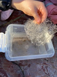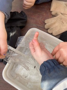 Vi håller på med vattnet i våra lådor, vecka ut och vecka in under flera månader. Utomhustemperaturen ger oss hela tiden nya saker att upptäcka och förundras över. Vad händer, varför då, och hur hänger det ihop med andra fenomen vi lägger märke till i naturen omkring oss? “Det var frost på min mammas bilruta idag…”. “Jag har hittat ett vitt löv!”