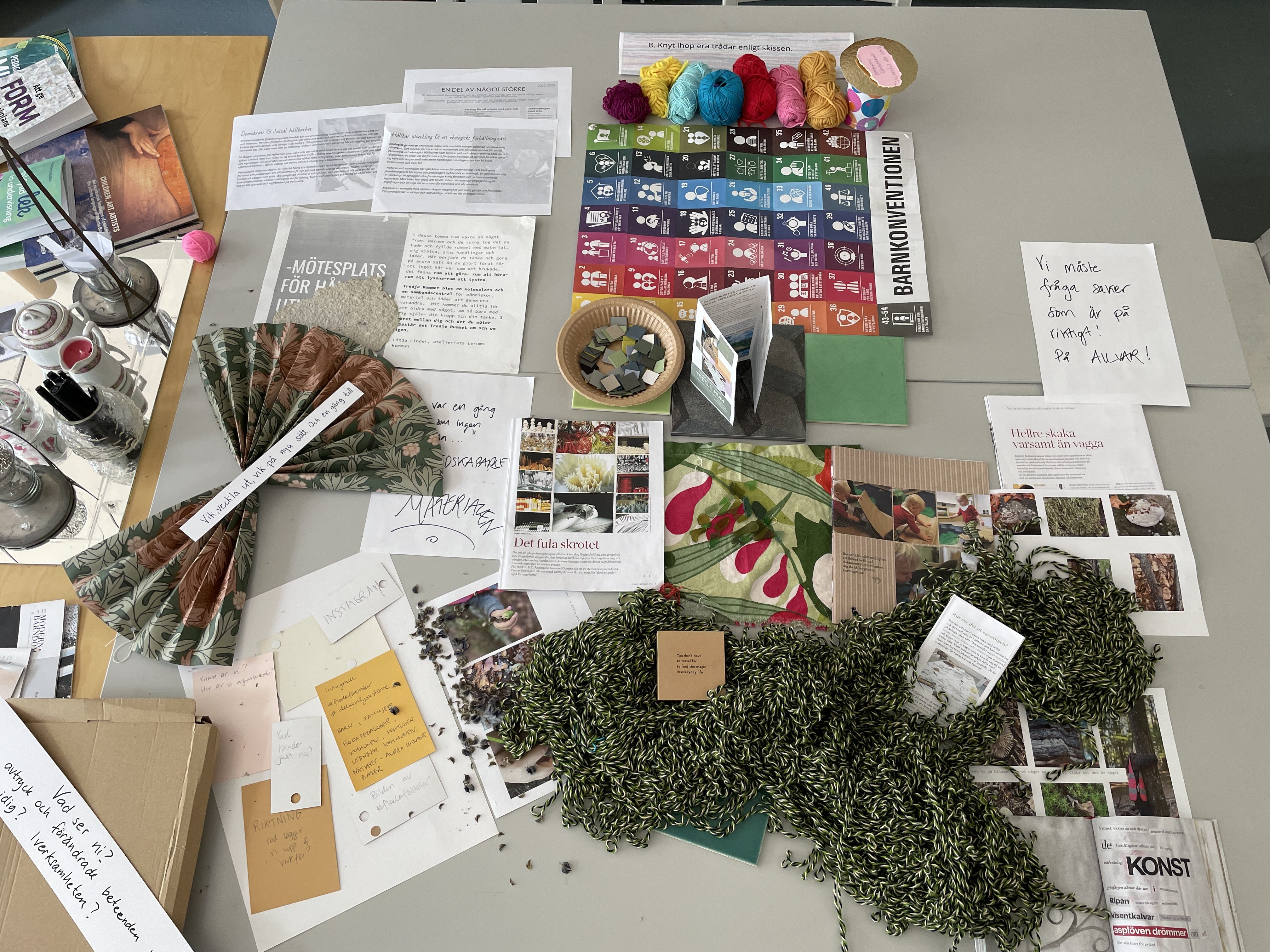 Att komma upp på en vägg är aldrig en slutdestination för den dokumentation som är i process. Det är bara en början. Det är då, när något samlats som vi kan börja tänka tillsammans med den. Det är då vi kan få syn på vad vi håller på med, eller inte. Vad vi blir intresserade av eller inte. Vad vi har, vad vi saknar, vad vi önska och vidare. Dokumentationen är i förvandling, i transformation ständigt och den är aktiv, en aktiv agent i vårt undersökande. Om den är betydelsefull är den en källa till idéer och kommunikation. Jag och min kollega har väldigt svårt att slänga olika typer av spår som vi samlat genom åren. Vi brukar plocka fram och återvända, ibland klipper vi ur saker som fortfarande är viktiga och ger dokumentationen nytt liv genom att sortera den och använda den igen. Var vi har varit, vad som återkommer och vad vi är nyfikna på nu förändrar hur vi ser och använder dokumentationen. För mig är det nära sammanlänkat med en konstnärlig process av att leta efter kopplingar, göra ett utryck och sedan se vad det sätter igång hos alla som möter det.
