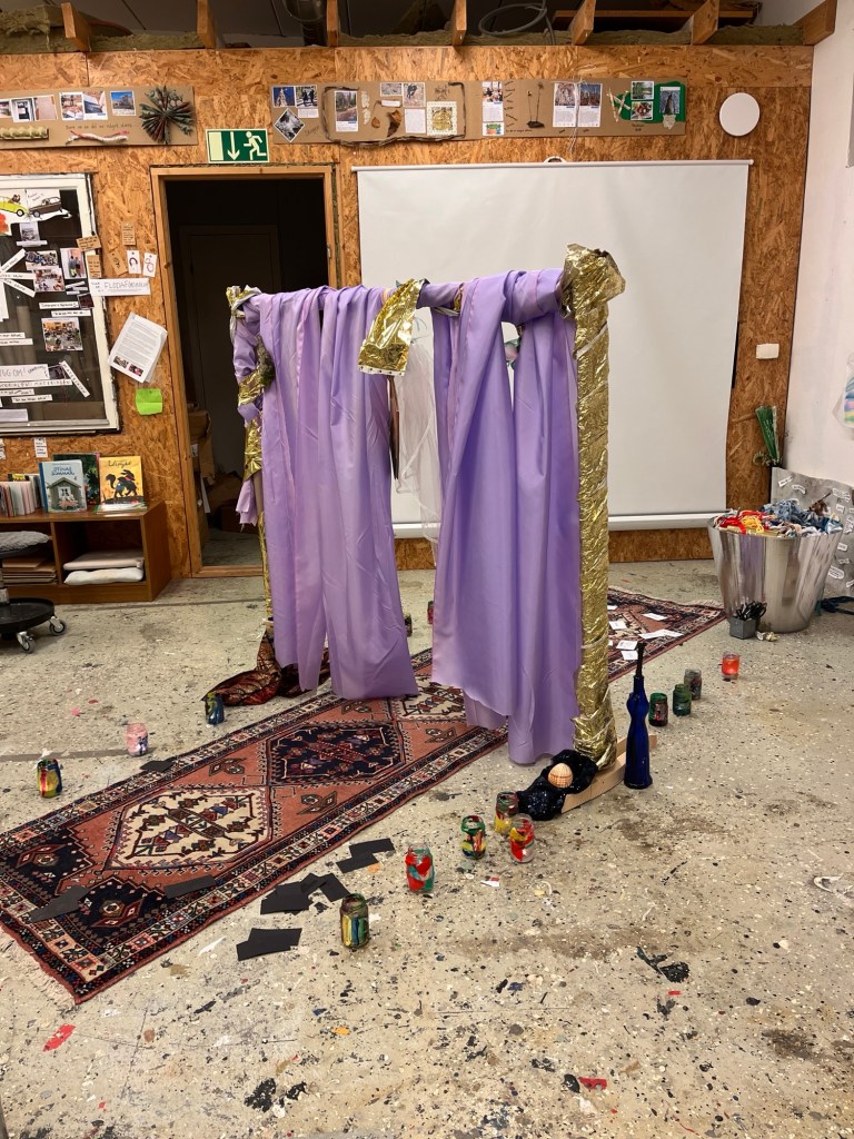 Därefter skrev vi saker som vi ville lämna på svarta lappar med svarta pennor och saker vi ville komma till på vita lappar med svarta pennor och gick sen en och en genom portalen och lämnade det svarta på ena sidan och de vita på andra. Samtidigt gjorde vi det hela än mer magiskt genom att göra en ljudmatta med magiska ljud. Det blev en lek på fullaste allvar. En stund att tänka på magin vi bygger in i våra egna och barnens liv och den kraft, samhörighet och känsla den kan skapa. Uppdraget för nästa treveckors fördjupning blir att bygga en eller flera portaler med barnen och leka med idén om att förflytta sig mellan världar.